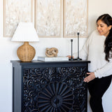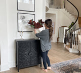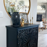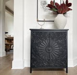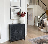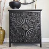 Black Floral Carved Accent Cabinet