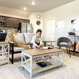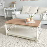 Transform your living room with our elegant coffee table, featuring a modern design that fits seamlessly into any home decor. Crafted from durable manufactured wood, this table boasts a stylish âXâ design that adds both stability and character to your space. Perfectly suited for placement beside your sofa or armchair, it merges functionality with aesthetic appeal, inviting cozy gatherings and leisurely coffee moments.