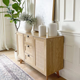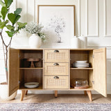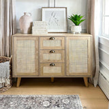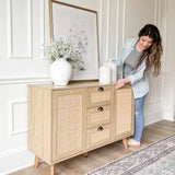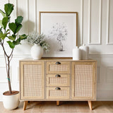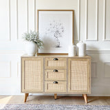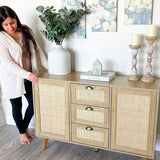 Transform your living space, bedroom, or hallway with this exquisite rattan sideboard, designed to seamlessly blend modern aesthetics with natural elements. The stylish combination of natural rattan and a fresh Bohemian vibe creates a light and inviting atmosphere that enhances any decor. With ample storage space, this sideboard is not only functional but also a stunning focal point in your home.