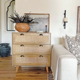Elevate your decor with this stunning three-drawer chest, designed with a modern blend of natural rattan elements and fresh Bohemian style. Its light and bright aesthetic not only enhances the beauty of any room but also provides practical storage solutions for your essentials. Perfect for bedrooms, living areas, or entryways, this chest is both functional and stylish.