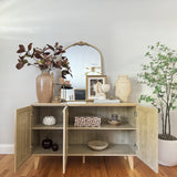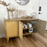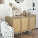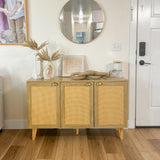 Enhance your living space, bedroom, or hallway with this stunning 3-door natural rattan sideboard, featuring a contemporary design that artfully combines modern style with the organic allure of rattan. Its graceful lines and rich textures create an atmosphere of sophistication and comfort, making it a striking addition to any room. This sideboard not only elevates your decor but also provides ample storage for all your essentials.