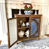 - Unique Carved Design: Eye-catching blue and white patterns enhance the cabinet’s artistic appeal.