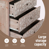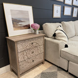 Transform your living room or bedroom space with our exquisite handmade accent cabinet, a unique blend of functionality and artistic craftsmanship. Expertly designed and crafted using traditional techniques, this cabinet offers ample storage while showcasing a distinctive aesthetic that elevates any room. Its handcrafted details ensure each piece is one-of-a-kind, adding a touch of elegance to your home.