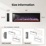 60" Wall Mounted & Recessed Electric Fireplace with Remote Control