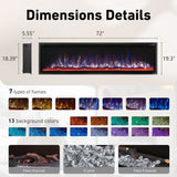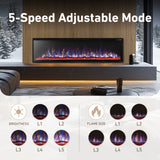 72" Premium Wall Mounted & Recessed Electric Fireplace with Remote Control