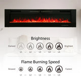 72" Wall Mounted & Recessed Electric Fireplace with Remote Control