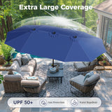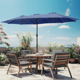 Alpha Joy 15ft Outdoor Patio Umbrella Extra-Large Double-Sided Garden Umbrella with Crank Handle and Base - Haze Blue