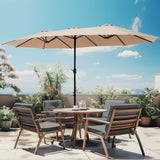 Alpha Joy 15ft Outdoor Patio Umbrella Extra-Large Double-Sided Garden Umbrella with Crank Handle and Base - Beige