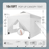 10'x 10'ft Pop Up 3 Height Adjustable Canopy Tent with 4 Side Walls
