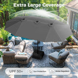 Alpha Joy 15ft Extra Large Outdoor Patio Double-Sided Umbrella with Solar Lights & Umbrella Base, Light Gray