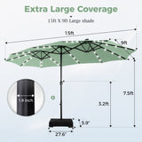 Alpha Joy 15ft Extra Large Outdoor Patio Double-Sided Umbrella with Solar Lights & Umbrella Base, Mint Green