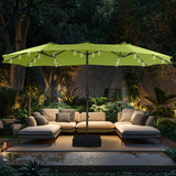 Alpha Joy 15ft Extra Large Outdoor Patio Double-Sided Umbrella with Solar Lights & Umbrella Base, Lime Green