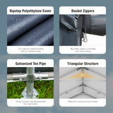 Our 12 x 14 ft portable storage shelter is a best choice for your motorcycle and outdoor equipment as a garage. This outdoor storage tents is designed for use in every season and can protect your equipment from sunlight, rain, snow, wind, dust, tree sap and more. Our portable shed could provide you a better shelter than other¡¯s low cheap quality ones, because it is made of better galvanized thicken steel poles and 200g PE Cover, which makes the whole tent much sturdier and more durable. Designed for easy set up and portability, this storage shelter can be a motorcycle shed, storage tent for ATV, bike storage shed, garden and lawn equipment, tools, backyard items, children toys, firewood, ride on lawn mower etc.