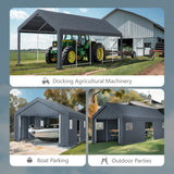 Alpha Joy 13 x 24 x 9.6 ft Portable Storage Shed Outdoor Heavy Duty Carport with Roll-up Ventilated Windows for Patio Furniture