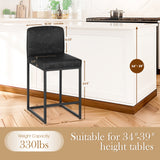 Classic PU Leather Bar Stools with Backs and Sturdy Metal Frame, Black