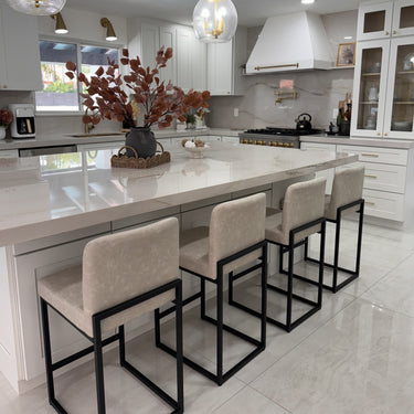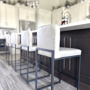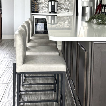 Elevate your kitchen space with these PU leather counter stools, designed for both comfort and style. The plush 3.54" upholstered seat and soft backrest create a cozy seating experience, while the retro matte finish adds a touch of elegance. With a durable metal frame that ensures stability and easy maintenance, these stools are perfect for sharing family moments in the kitchen, enjoying relaxed breakfasts, or hosting vibrant gatherings with friends.