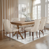 Redefine your dining moments with our exquisite PU Leather Dining Chairs, where timeless elegance pairs seamlessly with contemporary functionality. Covered in rich, waterproof faux leather, the plush cushions invite you to savor every meal while creating lasting memories with family and friends. The sophisticated nailhead details and sturdy solid wood legs bring an upscale touch, complemented by the convenient pull ring at the back for easy maneuverability. Ideal for both family feasts and cozy dinners, these chairs foster a warm ambiance that enhances the joy of sharing meals in your home.