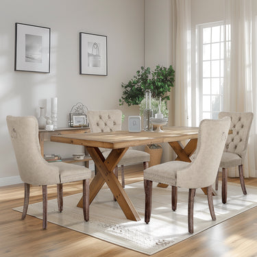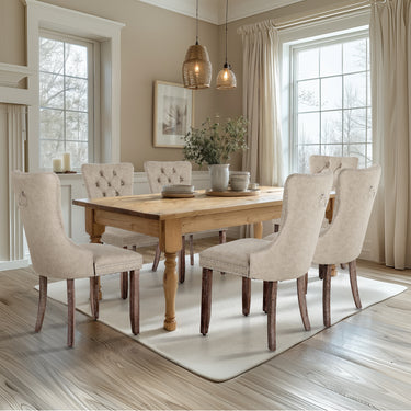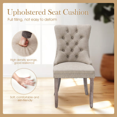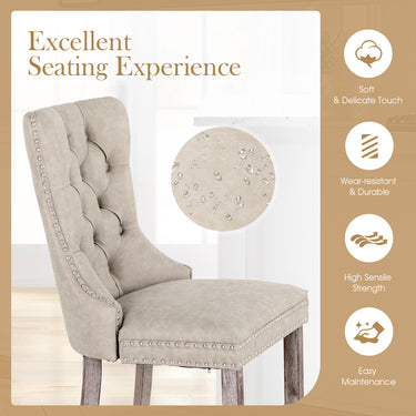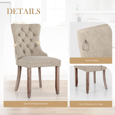 Redefine your dining moments with our exquisite PU Leather Dining Chairs, where timeless elegance pairs seamlessly with contemporary functionality. Covered in rich, waterproof faux leather, the plush cushions invite you to savor every meal while creating lasting memories with family and friends. The sophisticated nailhead details and sturdy solid wood legs bring an upscale touch, complemented by the convenient pull ring at the back for easy maneuverability. Ideal for both family feasts and cozy dinners, these chairs foster a warm ambiance that enhances the joy of sharing meals in your home.