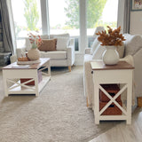 Elevate your living space with this versatile set of two side tables, designed to seamlessly blend with any decor while adding a touch of modern elegance. Perfect for placement beside your sofa or armchair, these tables are ideal for holding drinks, books, fresh flowers, or decorative accents. Alternatively, they can serve as stylish nightstands in your bedroom, providing both functionality and beauty. Whether in the living room or the bedroom, these tables bring warmth and charm to your environment.